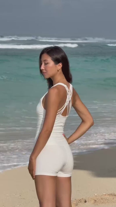 A premium activewear tank that feels extra soft and stays put. The double-layered knit gives smooth, supportive hold, while the crisscross back adds stability without bulk. Made in black with four-way stretch for movement, this is the easy throw-on you’ll wear for class, hikes, and everything after.